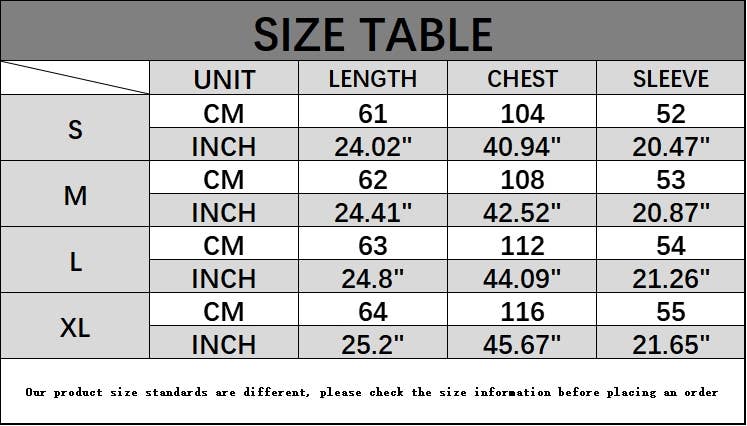 Sizes: Small, Medium, Large, XL